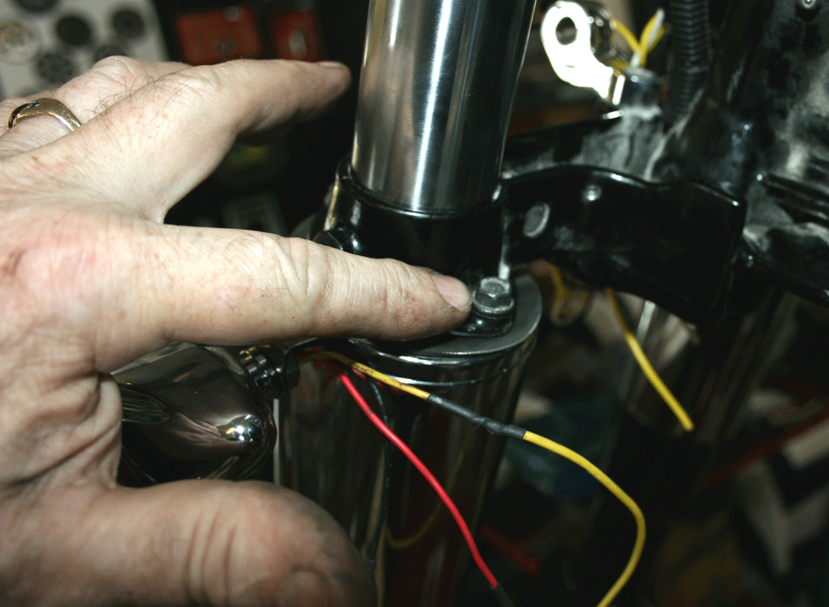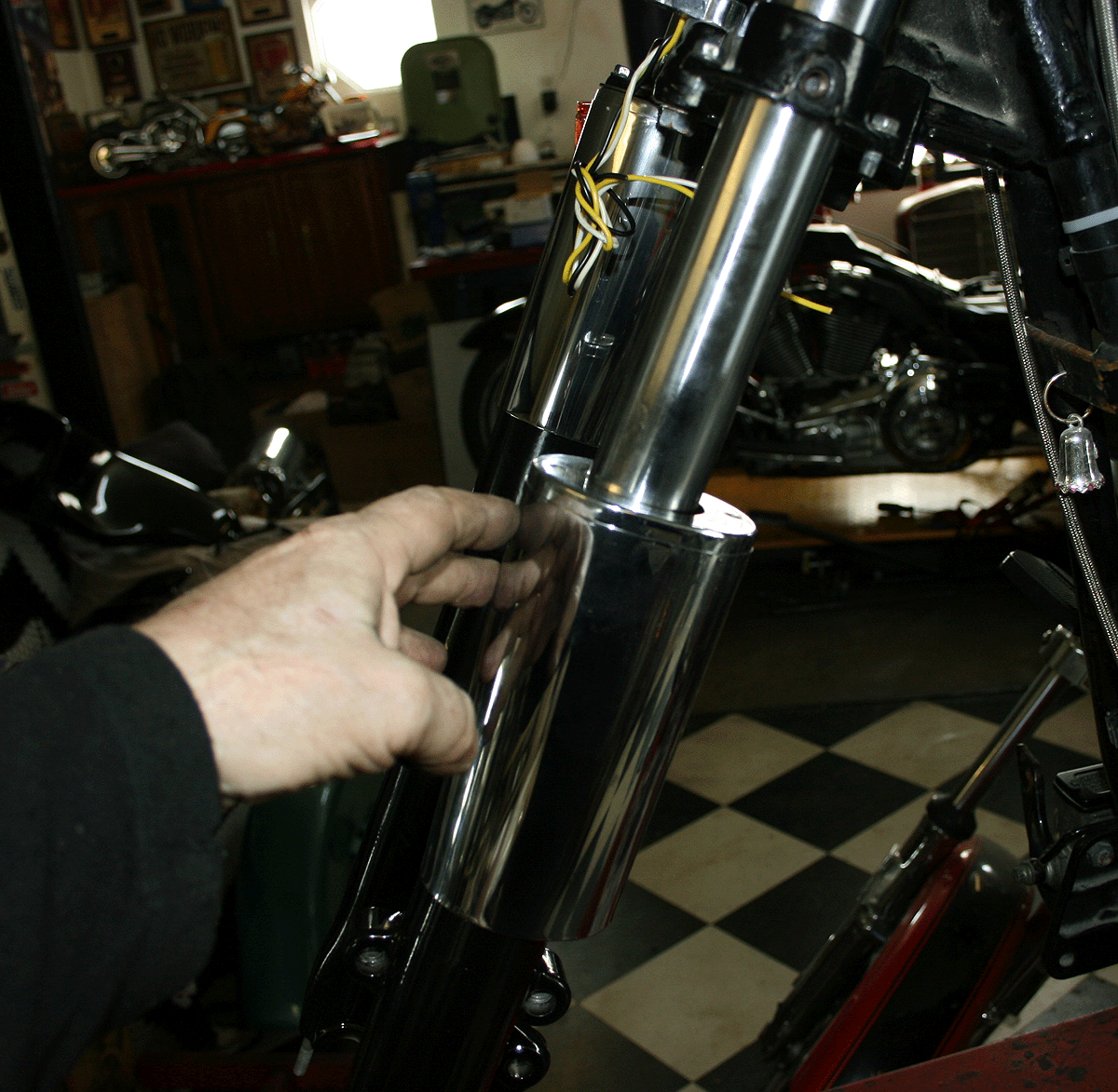 The you take out the two small screws that hold the slider covers on and move the slider down to the bottom fork leg.