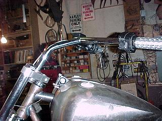 UP TOP WE HAVE A SET OF NESS PULBACKS MOUNTED ON A SET OF HANDMADE TREES. WE WILL PAINT THE CONTROLS AND ARE USING A SET OF BILLET GRIPS.