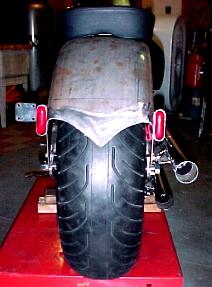 NOW WE HAVE TRIMMED THE REAR FENDER AND PUT SOME SIDES ON IT ALSO. THE SMALL SIGNAL LIGHTS WILL BE ENOUGH TO DO THE JOB.