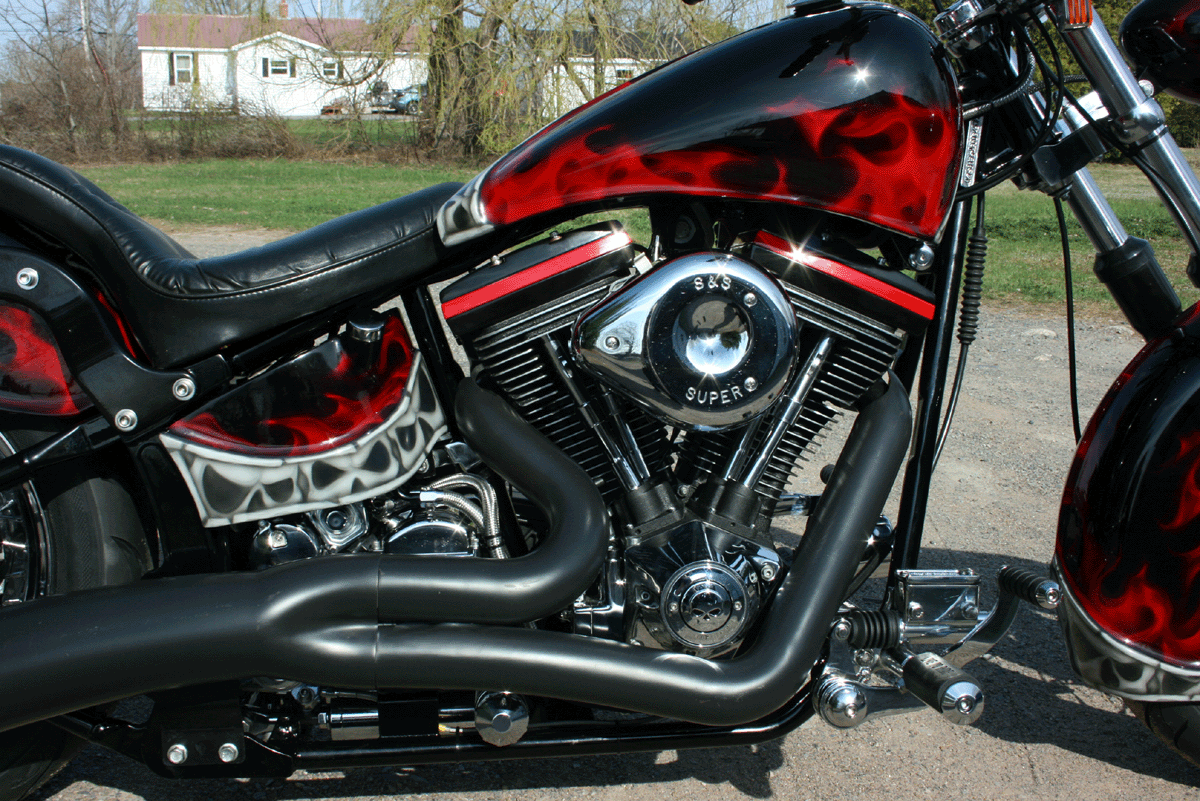 REBUILT NEW FROM TOP TO BOTTOM 80" EVO MOTOR, NEW: Rings, Ev46 cam, new lifters, adjustable pushrods,3 angle vavle job, 3 new rocker arm shafts, james gaskets, powder coated black rocker boxes, pigtails installed to eliminate base gasket leaks, all new bearings and seals from bottom to the top.