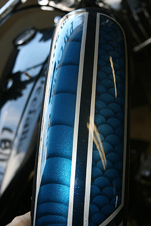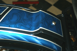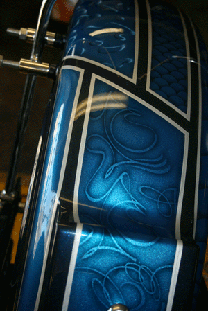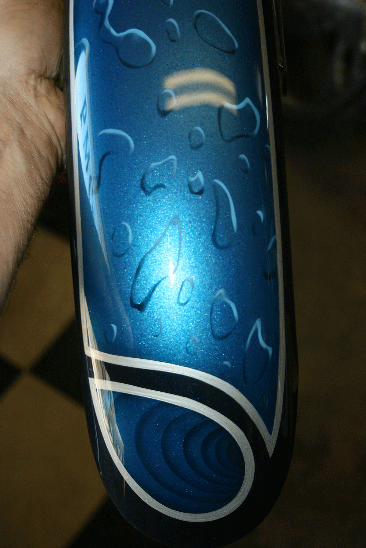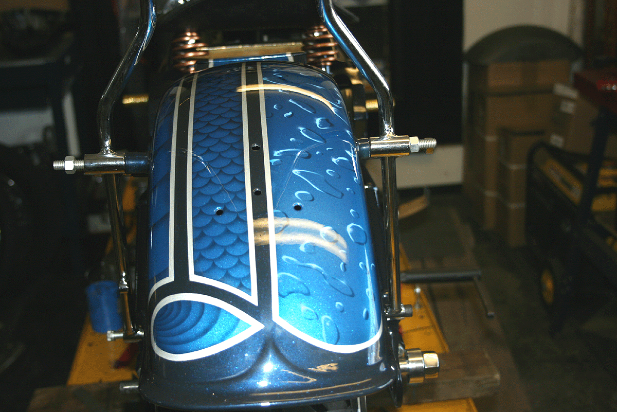 He managed to get many panels on the rear fender and I love the way it ends, with another small panel, instead of being just blocked off as they usually are. Thats why he's the painter...ha ha
