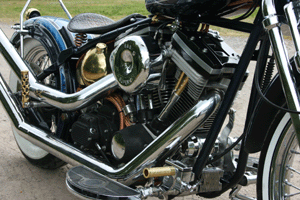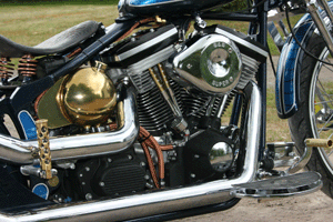 BRASS HEADLIGHT TRIM RING, BRASS FOOT PEGS, BRASS OIL TANK, BRASS HANDGIPS